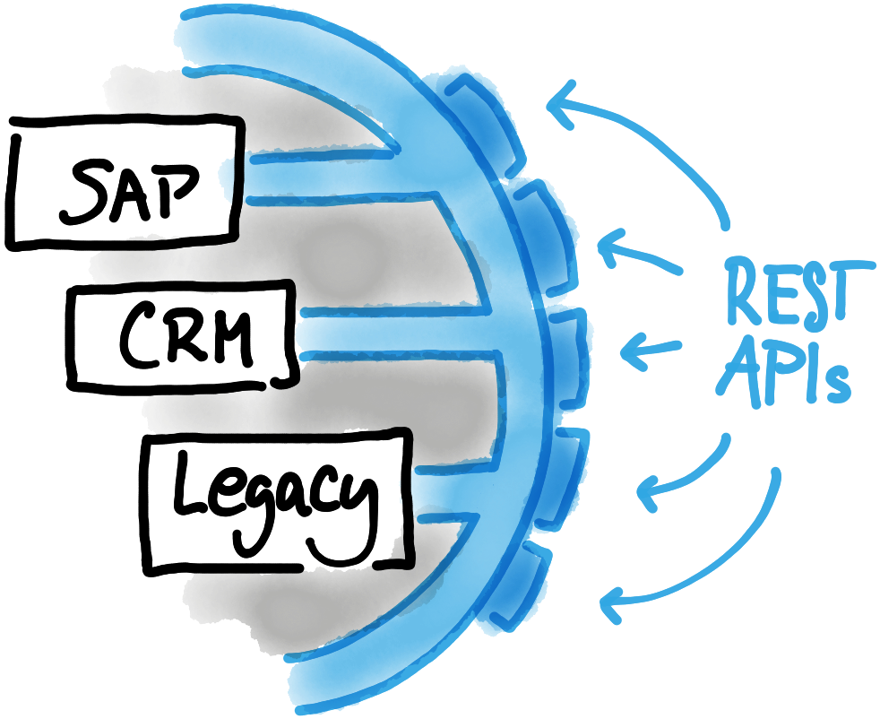 Bestehende Systeme werden über APIHub mit modernen REST-APIs ausgestattet — ohne Umbau. SAP, Eigenentwicklungen, alte Datenbanken: alles integrierbar.