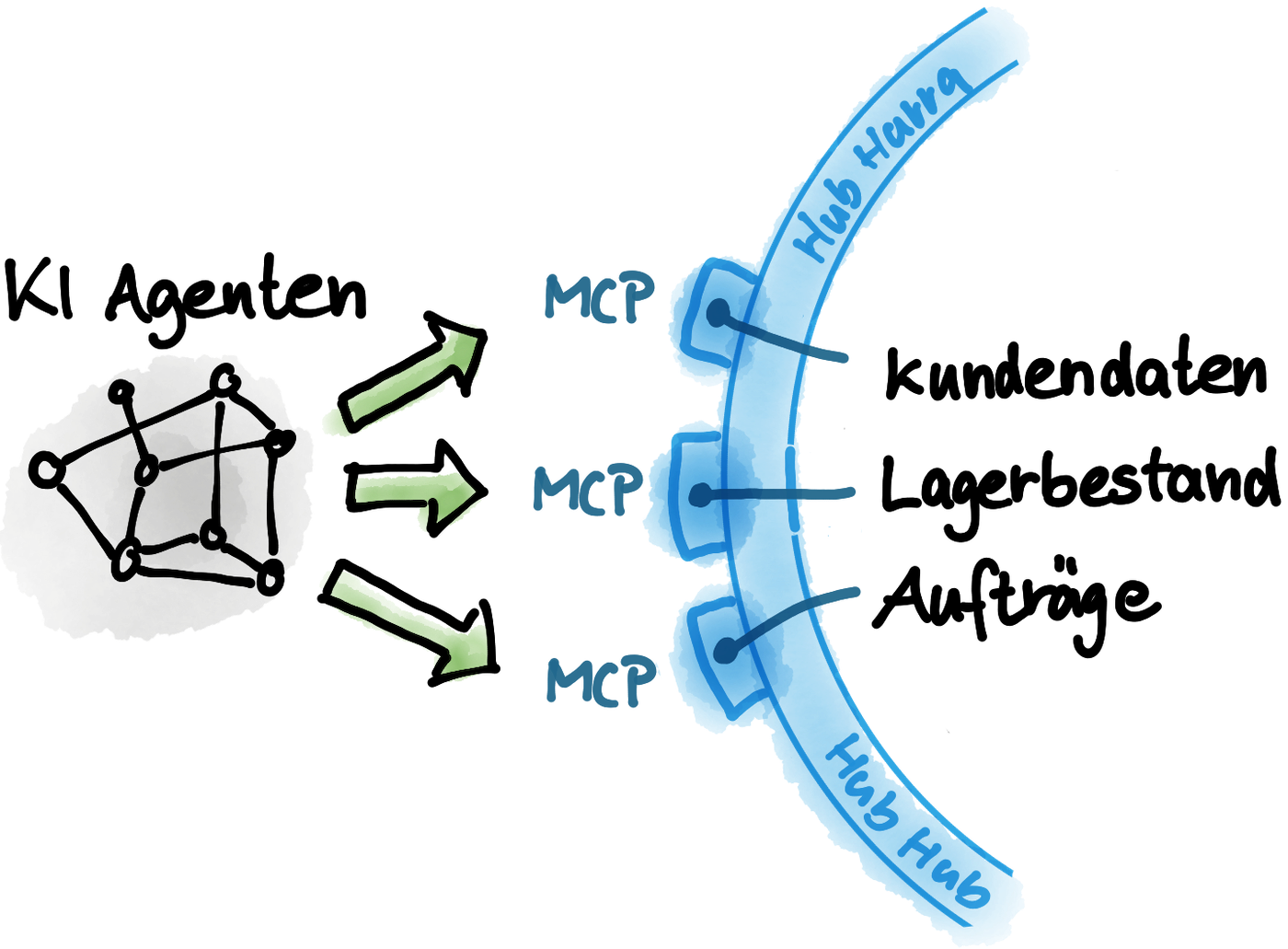 KI-Systeme brauchen strukturierten Zugang zu Unternehmensdaten. Jeder Dienst in APIHub ist automatisch MCP-fähig — Ihre KI-Agenten greifen sicher zu, ohne Systemumbau.